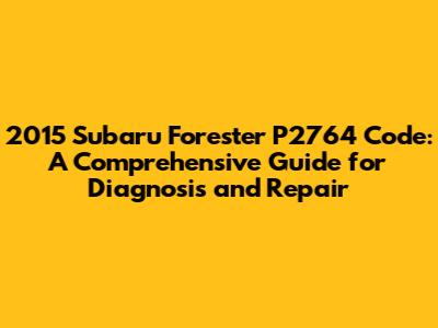 By understanding the causes, symptoms, and repair options associated with the P2764 code, you can take the necessary steps to keep your 2015 Subaru Forester running smoothly and reliably. Happy driving, and may your check engine light stay off!