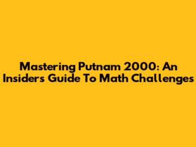 Mastering Putnam 2000: An Insider's Guide To Math Challenges