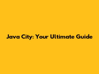 Java City: Your Ultimate Guide