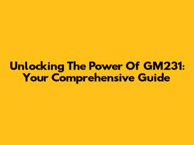 Unlocking The Power Of GM231: Your Comprehensive Guide