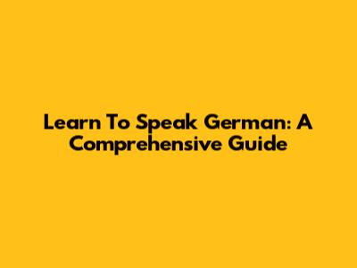 Learn To Speak German: A Comprehensive Guide