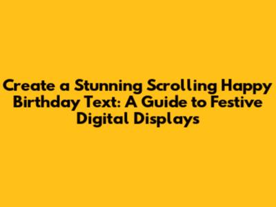 Hey everyone! Are you ready to jazz up your birthday celebrations with a super cool digital display? Today, we're diving into the world of scrolling text, specifically how to create a fantastic "Happy Birthday to Me" message that'll make you feel extra special. Whether you're planning a virtual party, setting up a fun display at home, or just want to add some pizzazz to your online presence, this guide will walk you through the steps. We'll explore different methods, from simple online tools to more advanced techniques using HTML and CSS, ensuring you find the perfect way to make your birthday message shine. So, let's get started and make your birthday unforgettable with a vibrant scrolling text!