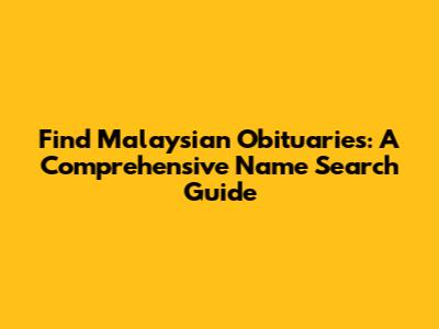Find Malaysian Obituaries: A Comprehensive Name Search Guide