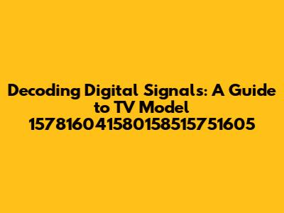 Hey guys, let's dive into the fascinating world of digital signals and explore what makes the TV model 157816041580158515751605 tick. We'll break down the techy jargon and make it easy to understand, even if you're not a tech whiz. This guide is all about helping you understand how this particular TV model functions, covering everything from the signals it receives to the amazing picture and sound it produces. So, grab your favorite snacks, sit back, and let's get started. We're going to uncover the secrets behind those crisp images and immersive audio experiences, focusing on the specific technologies and processes that make this TV model a standout. Get ready to enhance your understanding and appreciate the technology that brings your favorite shows and movies to life right in your living room.