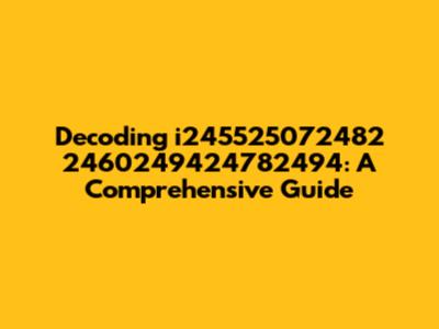 Let's dive into the enigmatic world of i245525072482 2460249424782494. You might be scratching your head, wondering what this string of numbers and letters could possibly mean. Well, you're not alone! These types of alphanumeric codes pop up in various contexts, from product serial numbers to internal tracking codes. Understanding what they represent can be super helpful, whether you're trying to troubleshoot an issue, identify a specific product, or simply satisfy your curiosity. In this guide, we'll explore the potential origins, common uses, and methods for deciphering such codes, empowering you to tackle similar puzzles in the future. By the end of this article, you’ll have a solid understanding of how these codes work and where you might encounter them, making you a more informed and savvy digital citizen. So buckle up, guys, and let's unravel this mystery together!