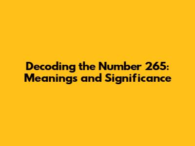 The Significance of 265 in Different Aspects of Life