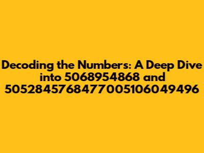 Hey guys, let's dive into some numbers, shall we? We're going to break down 5068954868 and 5052845768477005106049496. Now, these might look like random strings of digits at first glance, but hey, everything has a story, right? We're going to explore what these numbers could potentially represent, the various contexts where they might pop up, and how we can try to make sense of them. This is gonna be a fun ride as we decode these digits and uncover any hidden meanings. Get ready to put on your detective hats, as we embark on this exciting numerical adventure. Who knows what secrets these seemingly random numbers may hold! Maybe it's a phone number, maybe it's an ID number, or maybe it's nothing at all. Let's find out together!