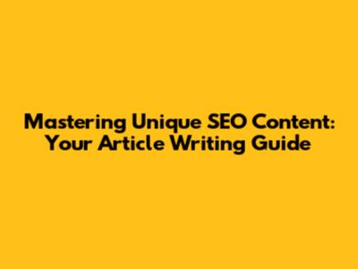 Mastering Unique SEO Content: Your Article Writing Guide