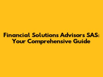 Hey guys! Let's dive into the world of Financial Solutions Advisors SAS. Ever wondered what they do? Well, buckle up, because we're about to explore everything from their core services to how they can potentially help you. Think of this as your one-stop shop for understanding this financial powerhouse. So, what exactly is Financial Solutions Advisors SAS, and why should you even care? Simply put, they are a team of financial experts dedicated to helping individuals and businesses navigate the often-complex world of finance. They provide a range of services designed to help you make informed decisions about your money, from investments and retirement planning to managing debt and building wealth. This is super important because let's face it, money matters! And having someone in your corner who understands the ins and outs of the financial landscape can be a huge advantage. Financial Solutions Advisors SAS isn't just about crunching numbers; they are about building relationships. They take the time to understand your individual financial goals and tailor their advice to your specific needs. This personalized approach is what sets them apart and can make all the difference in achieving your financial dreams. They offer a diverse range of services, catering to both individuals and businesses. They aim to provide tailored advice to help you manage your finances more effectively. They aim to make sure you have the knowledge and tools to succeed. So, whether you are just starting out, or a seasoned investor, they can provide the guidance and support you need to navigate the world of finance with confidence. They will aim to empower you to take control of your financial future, one step at a time. They will work with you to create a solid foundation for your financial success.