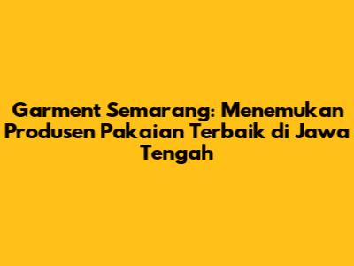 Garment Semarang – Hai guys! Kalau kamu lagi cari tempat produksi pakaian di Semarang, Jawa Tengah, artikel ini pas banget buat kamu. Kita bakal kulik habis tentang industri garment di Semarang, mulai dari produsen terbaik, jenis produk yang mereka buat, hingga tips memilih jasa garment yang tepat. Jadi, siap-siap ya, karena kita akan menyelami dunia garment Semarang yang seru dan informatif!