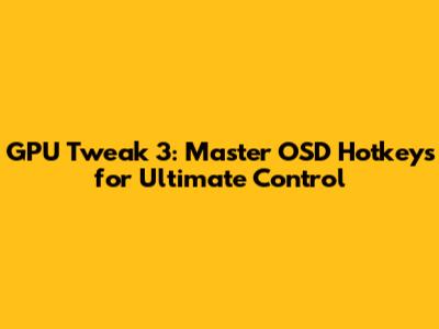 Hey guys! Today, we're diving deep into GPU Tweak 3, specifically focusing on how to master the OSD hotkeys for ultimate control over your system monitoring. If you're into overclocking, monitoring your system's performance, or just keeping an eye on things while gaming, understanding and customizing your OSD (On-Screen Display) hotkeys is a game-changer. Let's get started!