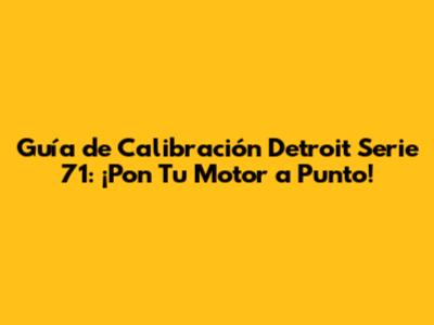 ¿Por Qué la Calibración del Motor Detroit Serie 71 es TAN Crucial?
