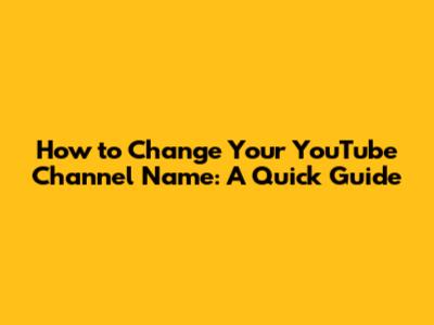 Step-by-Step Guide to Changing Your YouTube Channel Name