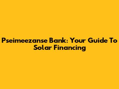 Pseimeezanse Bank: Your Guide To Solar Financing