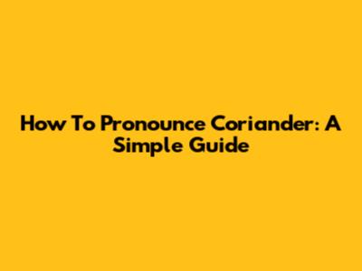 How To Pronounce Coriander: A Simple Guide