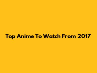 Top Anime To Watch From 2017