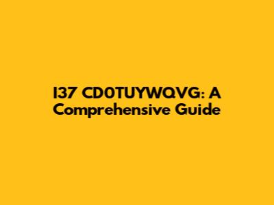 I37 CD0TUYWQVG: A Comprehensive Guide