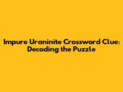 Crossword puzzles, those intricate grids of words, have captivated minds for generations. Among the myriad of clues that puzzle enthusiasts encounter, some stand out for their obscurity or specialized knowledge they demand. The clue "impure uraninite" certainly falls into this category. For those unfamiliar with mineralogy or the intricacies of uranium-containing rocks, this clue can present a significant challenge. But fear not, fellow crossword solvers! In this comprehensive guide, we'll delve into the world of uraninite, explore its impurities, and ultimately unravel the solution to this perplexing crossword clue. Let's embark on this journey of linguistic and scientific discovery!