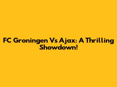 FC Groningen Vs Ajax: A Thrilling Showdown!