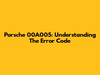 Porsche 00A005: Understanding The Error Code