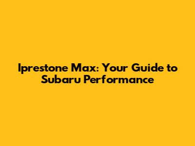 Hey Subaru enthusiasts! Let's dive into the world of Iprestone Max, a name that often pops up when discussing Subaru performance and maintenance. Whether you're a seasoned Subaru owner or new to the family, understanding what Iprestone Max is and how it relates to your vehicle can be super beneficial. We're going to break down everything you need to know, from its purpose to its potential impact on your Subaru's performance. Think of this as your friendly guide to keeping your Subaru running smoothly and efficiently.