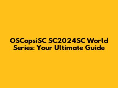 OSCopsiSC SC2024SC World Series: Your Ultimate Guide