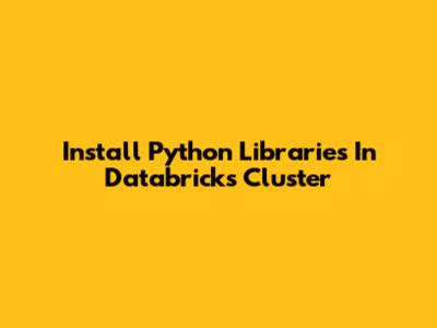 Install Python Libraries In Databricks Cluster