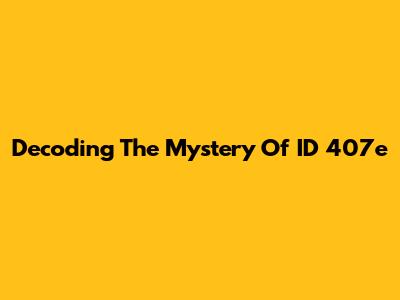 Decoding The Mystery Of ID 407e