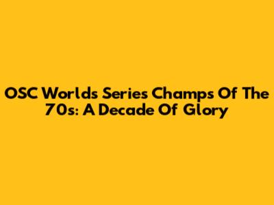 OSC Worlds Series Champs Of The 70s: A Decade Of Glory