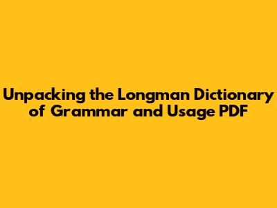 Unpacking the Longman Dictionary of Grammar and Usage PDF