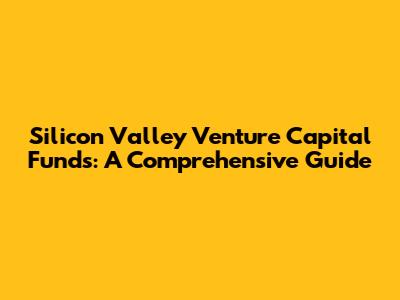 Silicon Valley Venture Capital Funds: A Comprehensive Guide