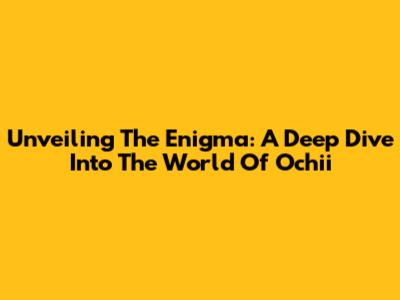 Unveiling The Enigma: A Deep Dive Into The World Of Ochii