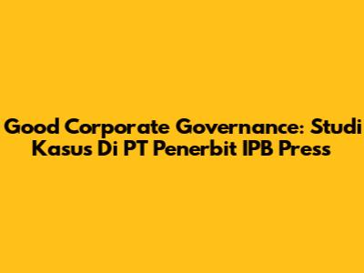 Good Corporate Governance: Studi Kasus Di PT Penerbit IPB Press