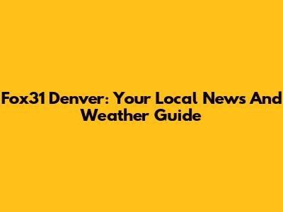 Fox31 Denver: Your Local News And Weather Guide