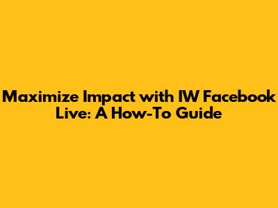 IW Facebook Live: What Makes It Unique? The term "IW" could stand for anything from a specific company initiative to a community event. Therefore, understanding the goals, target audience, and branding associated with "IW" is paramount. For instance, if "IW" refers to a tech conference, the content strategy for your Facebook Live broadcasts should revolve around providing value to attendees and those interested in the tech industry. This might include live interviews with speakers, behind-the-scenes glimpses of the event, and real-time Q&A sessions. Conversely, if "IW" is a local charity, your live streams might focus on fundraising efforts, volunteer spotlights, and stories of impact. The key is to align your content with the overarching objectives of "IW."