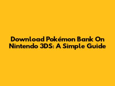 Download Pokémon Bank On Nintendo 3DS: A Simple Guide