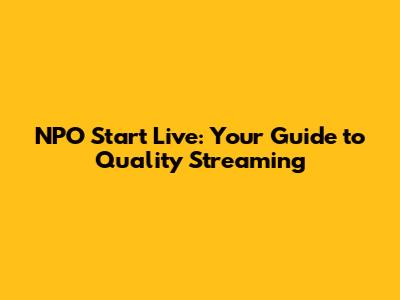 Hey guys! Ever wondered about NPO Start Live and how to get the best quality streaming experience? You're in the right place. This guide dives deep into everything you need to know, from understanding what NPO Start Live offers to troubleshooting common issues and optimizing your setup for crystal-clear viewing. Let's get started!