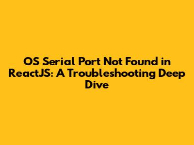 By understanding these potential causes, you're well on your way to diagnosing and resolving the "OS Serial Port Not Found" issue in your ReactJS project. Remember, it's a multi-faceted problem that often requires a combination of software and hardware checks.