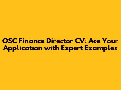 Why Your OSC Finance Director CV Matters