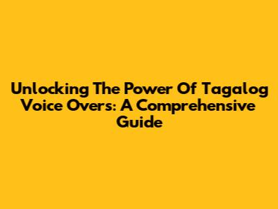 Unlocking The Power Of Tagalog Voice Overs: A Comprehensive Guide