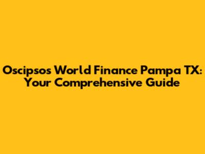 Hey guys! Are you looking for financial solutions in Pampa, Texas? Then, let's dive deep into Oscipsos World Finance and how it serves the community. Understanding your financial options is super important, and having a reliable local resource can make all the difference.