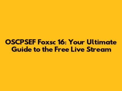 How to Access the OSCPSEF Foxsc 16 Live Stream for Free