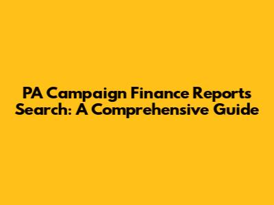 Hey guys! Ever wondered how political campaigns in Pennsylvania get their funding and where they spend it? It's all public record, and diving into PA campaign finance reports can give you a real peek behind the curtain of our elections. This guide will walk you through everything you need to know to effectively search and understand these reports. Let's get started!