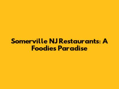 Somerville NJ Restaurants: A Foodie's Paradise
