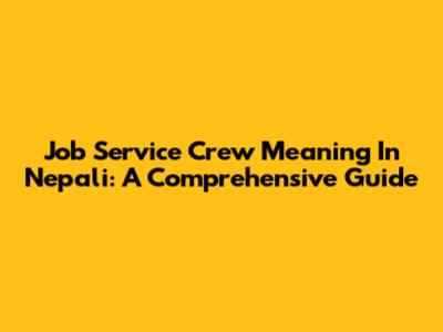 Job Service Crew Meaning In Nepali: A Comprehensive Guide
