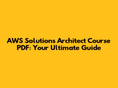 AWS Solutions Architect Course PDF: Your Ultimate Guide
