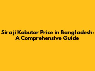 Alright, let's get to the nitty-gritty: the Siraji Kobutor price in Bangladesh. The price can vary quite a bit, depending on a few key factors. Understanding these elements will help you make an informed decision when you're ready to buy your own.
