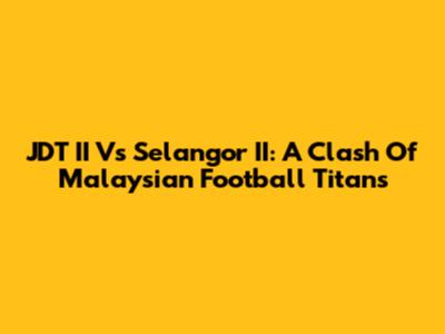 JDT II Vs Selangor II: A Clash Of Malaysian Football Titans