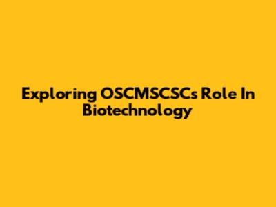 Exploring OSCMSCSC's Role In Biotechnology