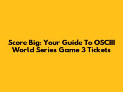 Score Big: Your Guide To OSCIII World Series Game 3 Tickets